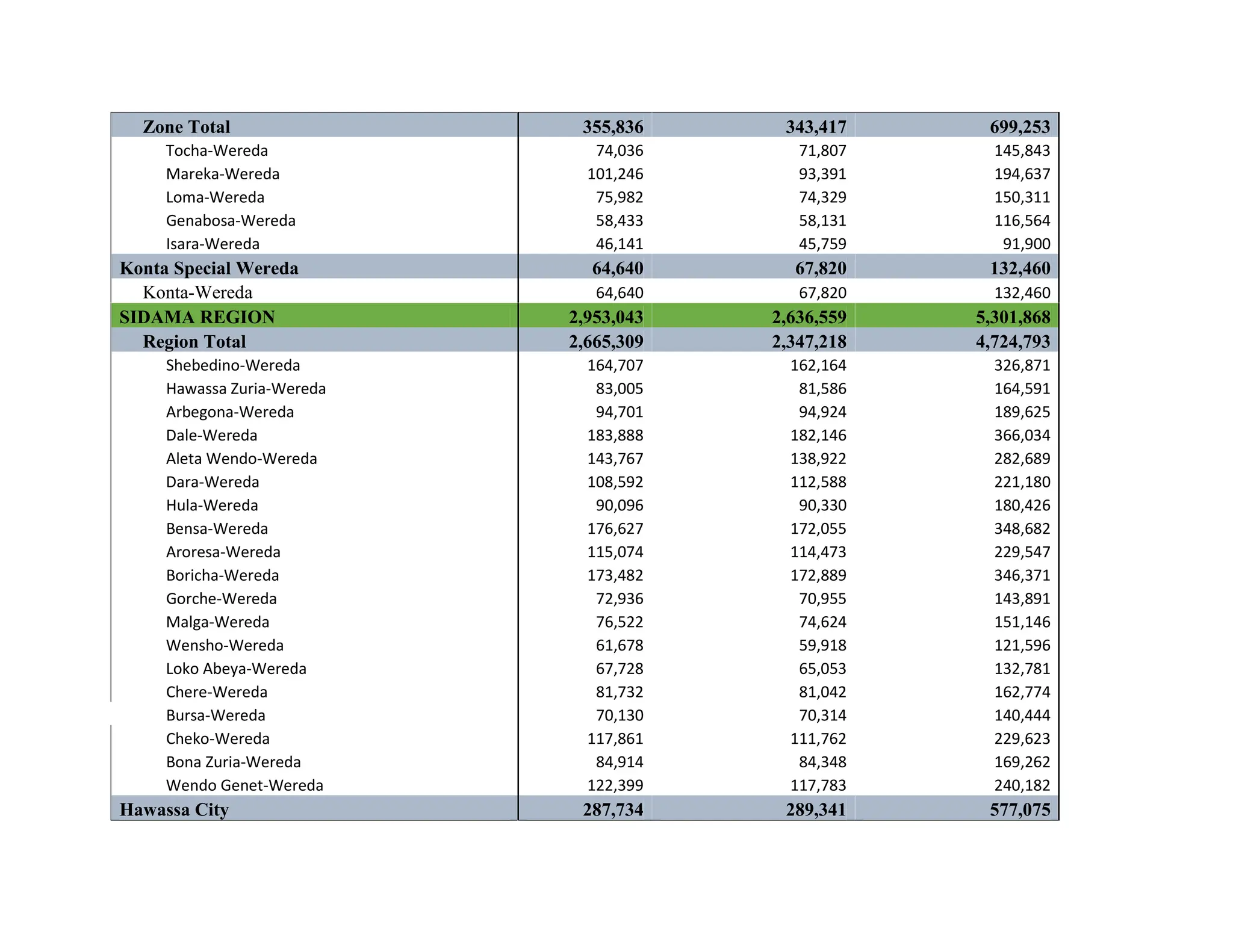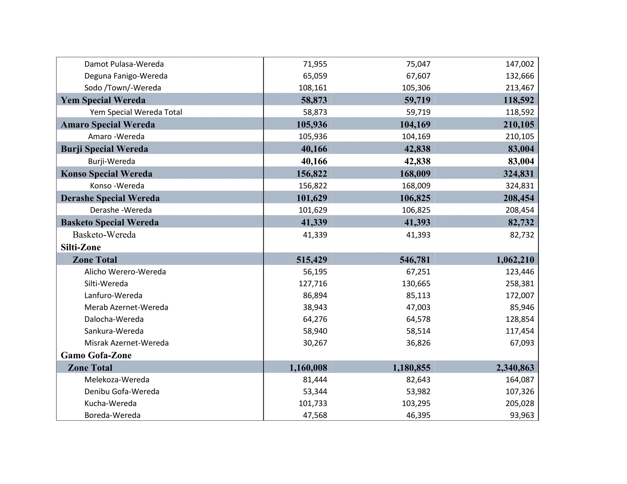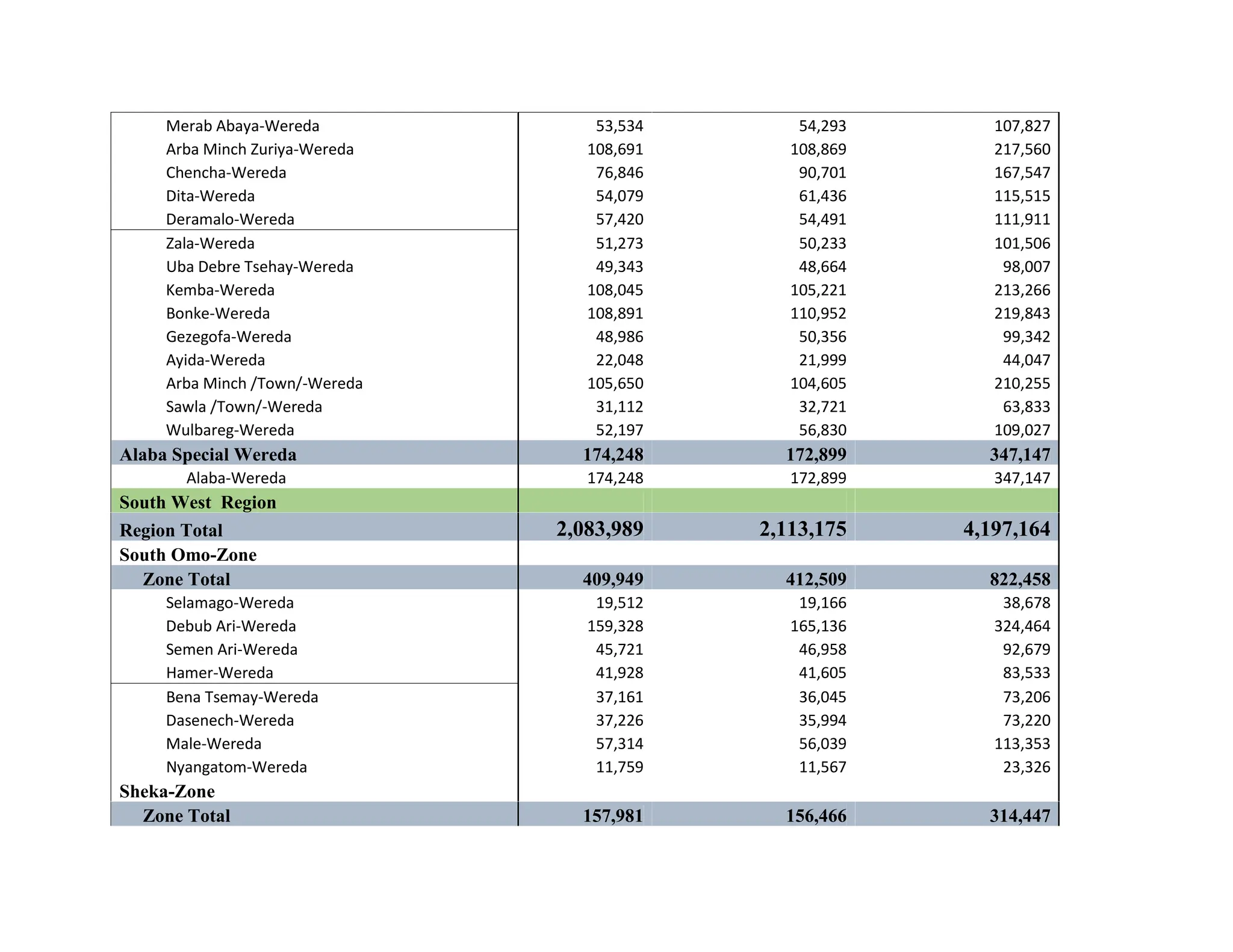 Population of Zones and Weredas Projected as of July 2023 pdf