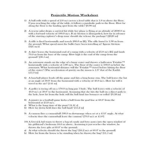 Physics 12 Projectile Motion Worksheet 2 db excel com