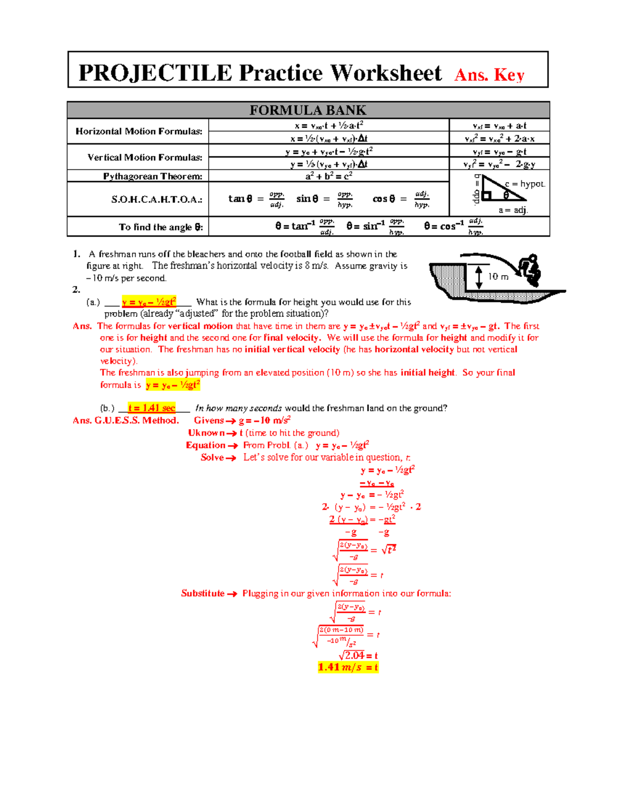Projectile Motion Problem Worksheet PDF Worksheets Library