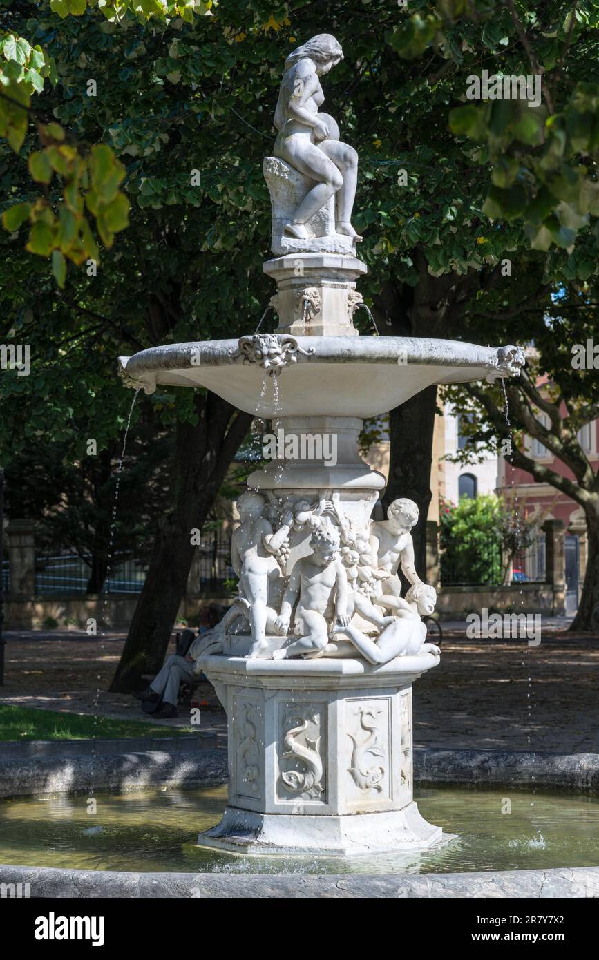 Baroque fountain on the promenade of the river Urumea Donostia San