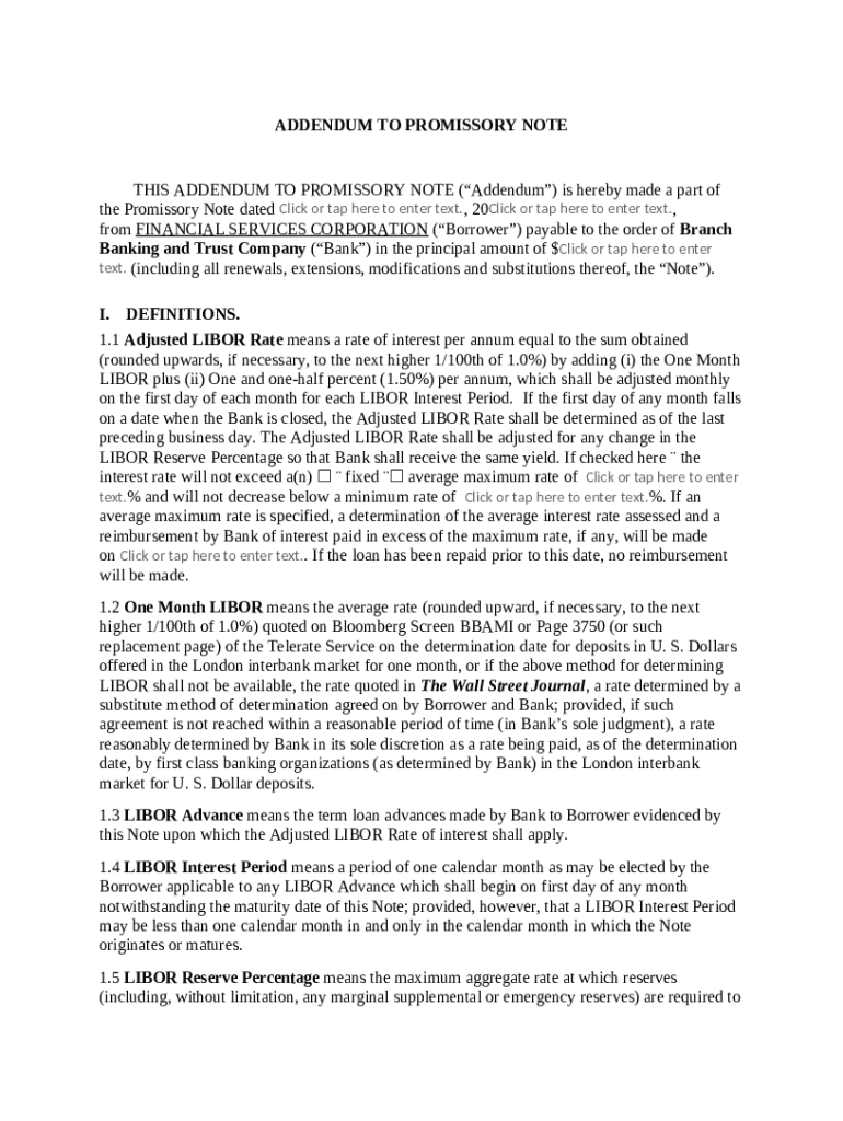 Promissory Note Addendum Template