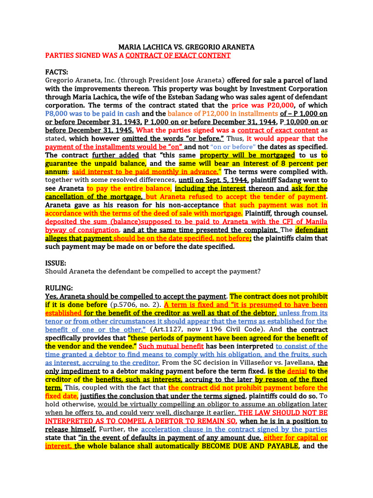 Kinds of Obligations Cases PDF Promissory Note Lease