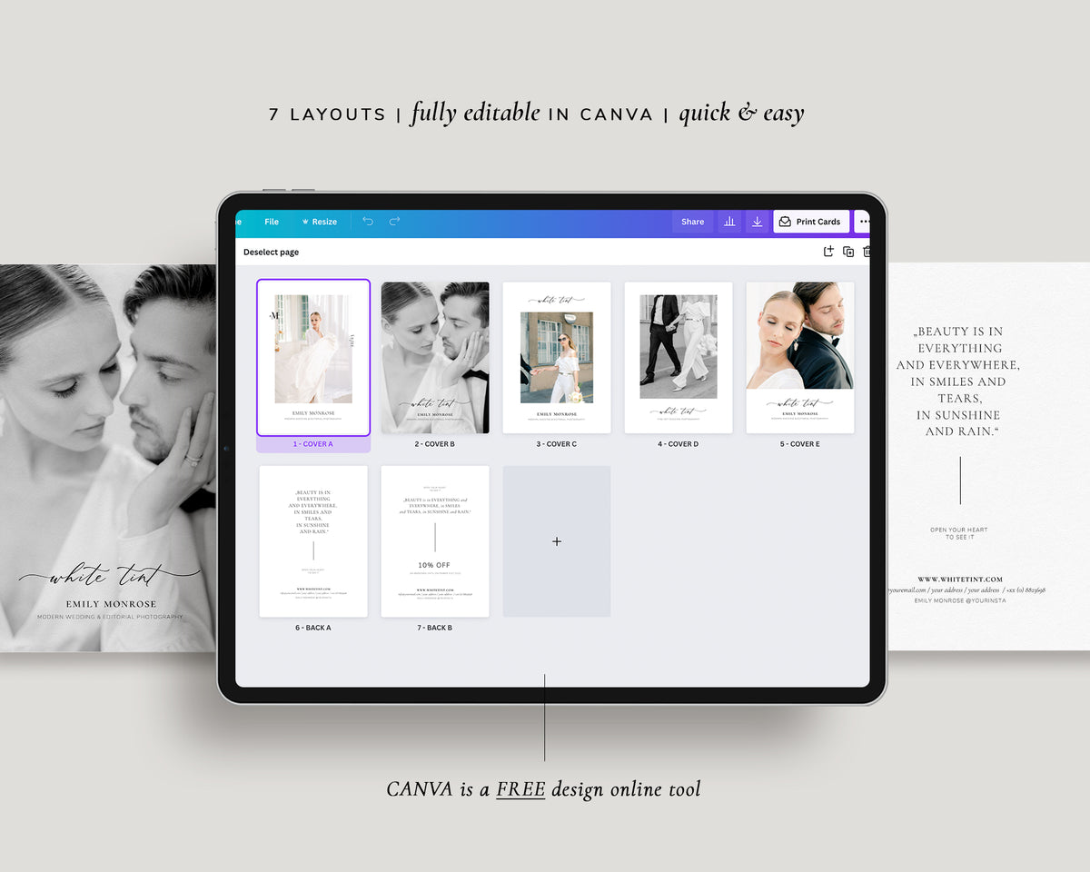 CANVA PROMO CARD Flyer Template for Photographers WHITE TINT