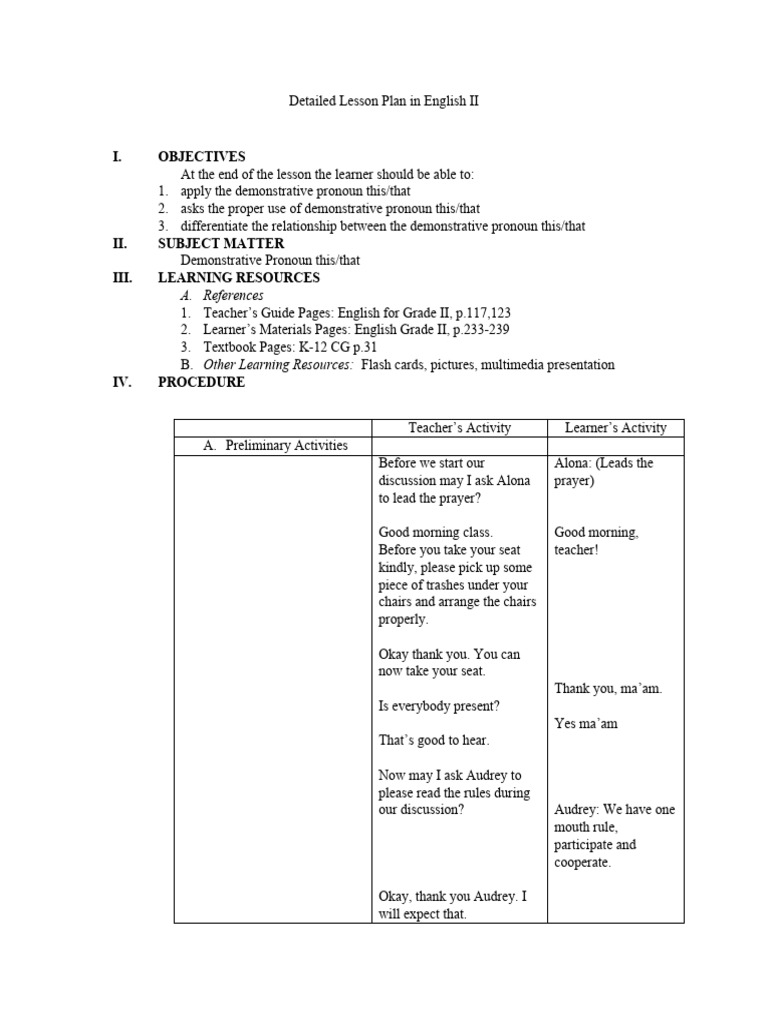 Detailed Lesson Plan in English II PDF Pronoun Lesson Plan