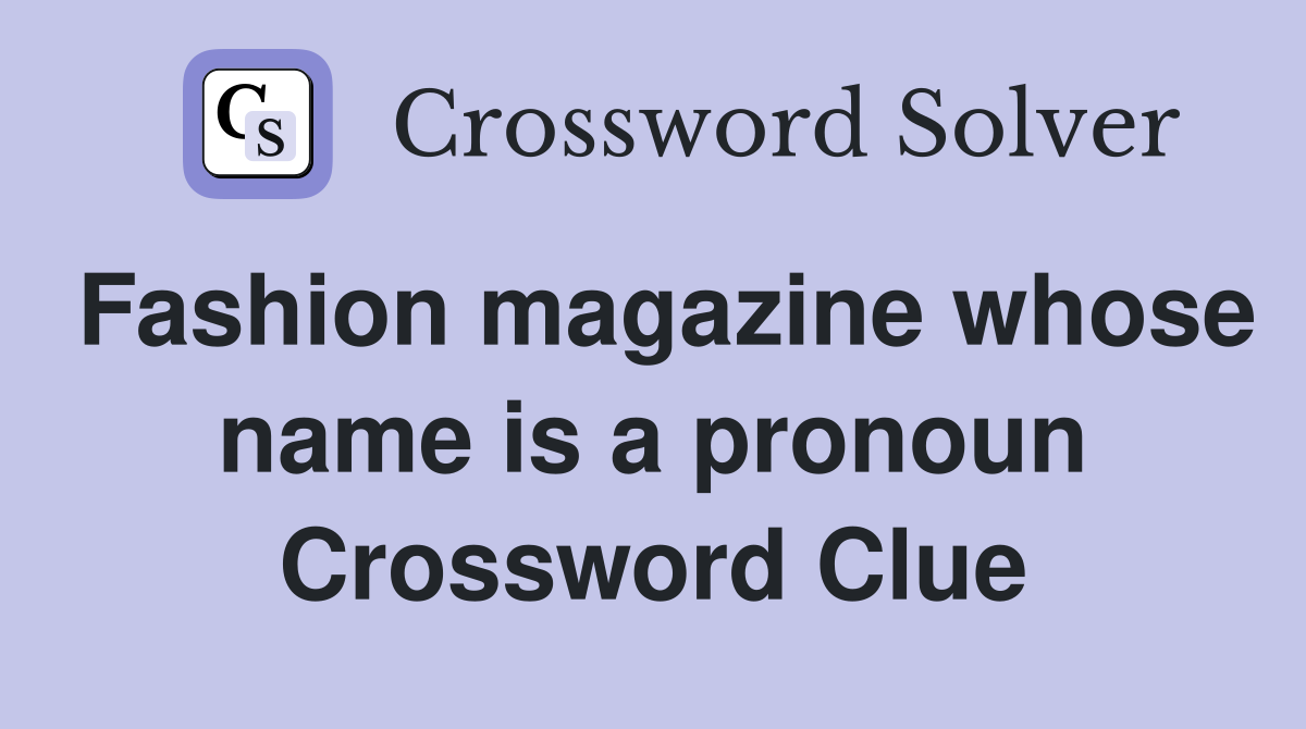 Fashion magazine whose name is a pronoun Crossword Clue Answers