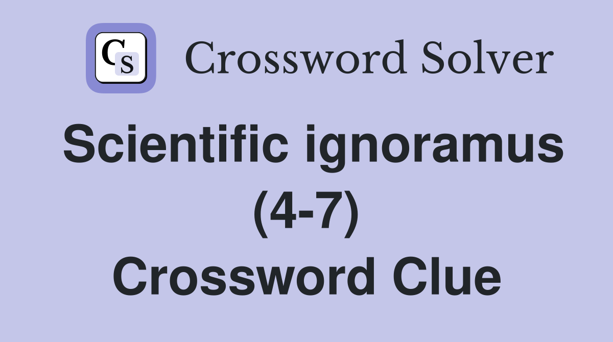 Scientific ignoramus (4 7) Crossword Clue Answers Crossword Solver