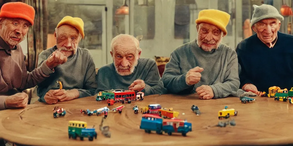 film still of wrinkly old men wearing propeller Stable Diffusion