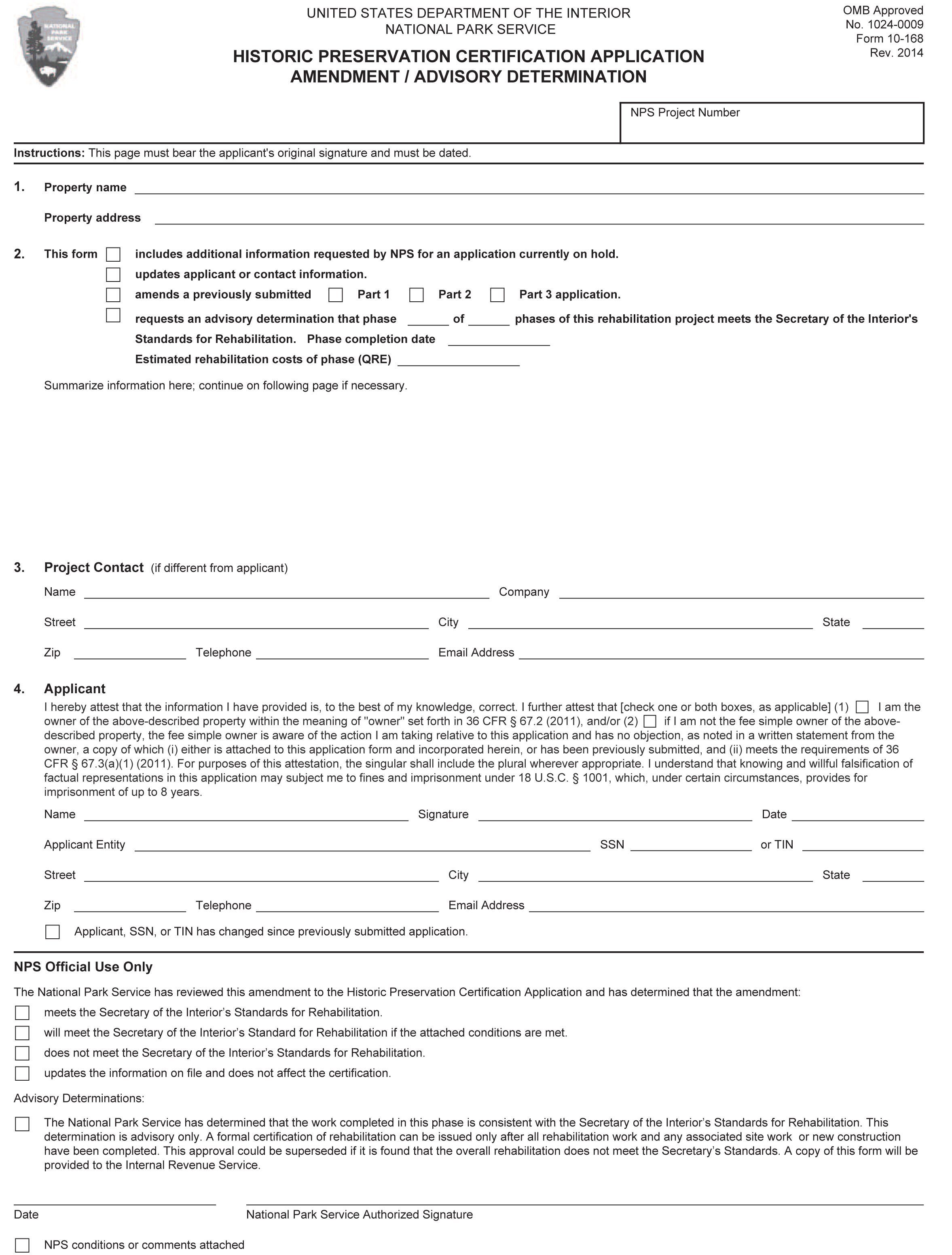 Fillable Online NPS Form 10 168a HISTORIC PRESERVATION CERTIFICATION