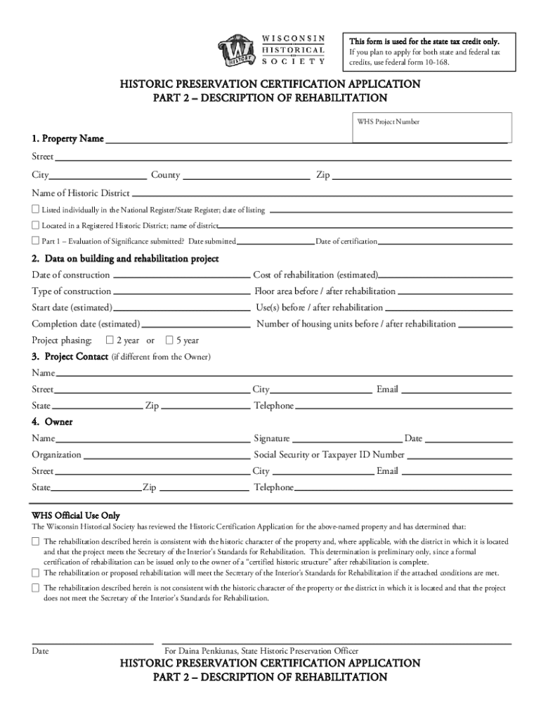 Fillable Online wisconsinhistory Historic preservation certification