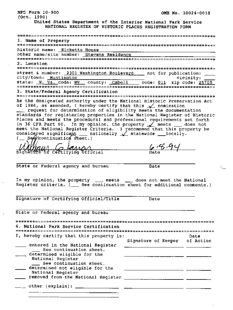 Fillable Online NPS Form 10 168c HISTORIC PRESERVATION CERTIFICATION