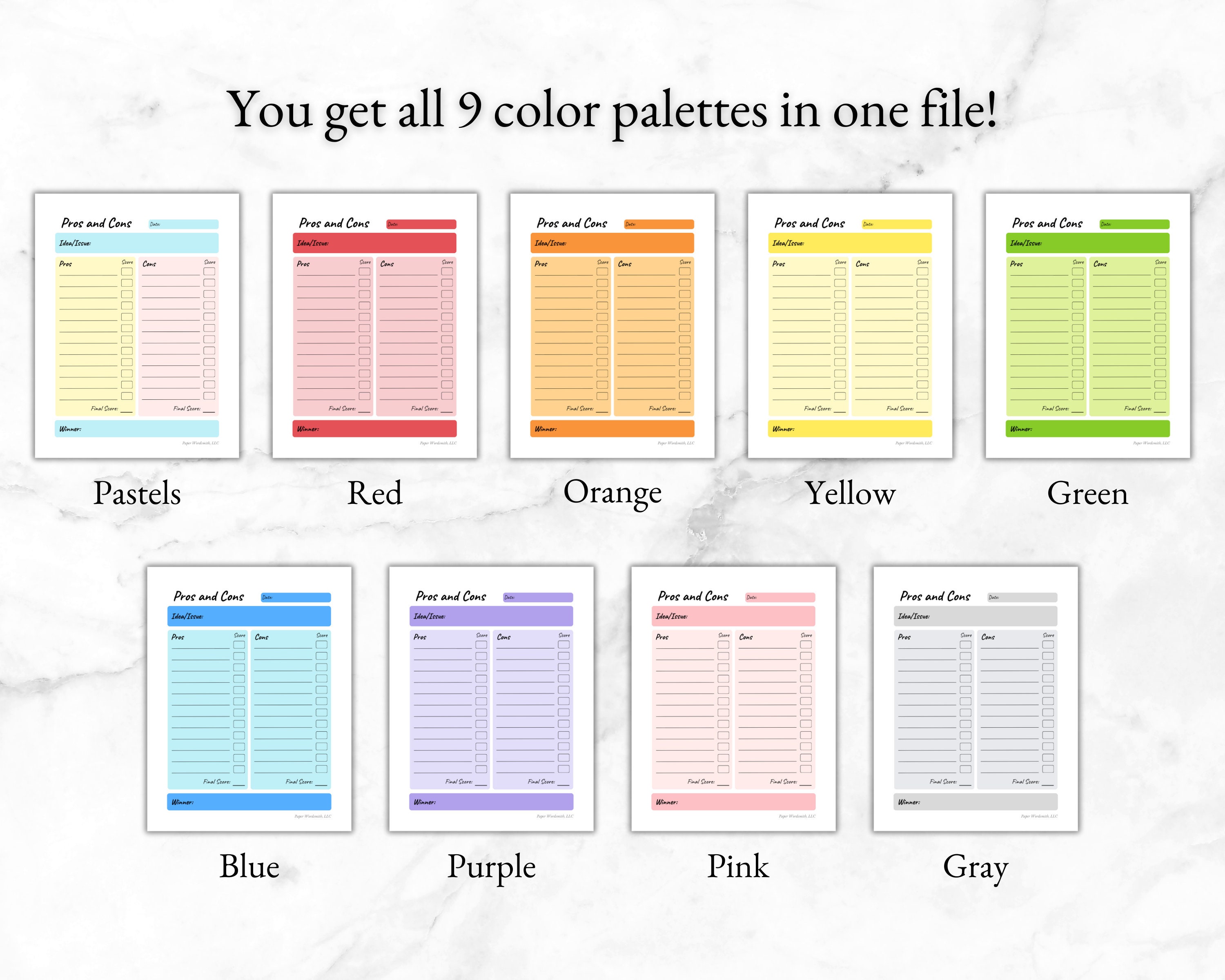 Printable Pros and Cons List Template Instant Download Productivity