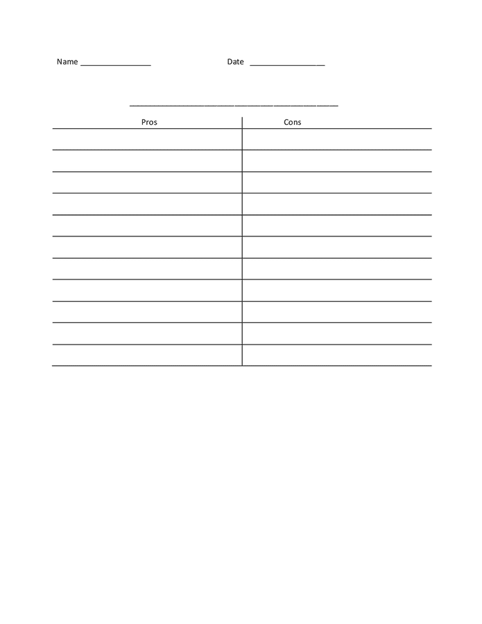 Pros And Cons Template
