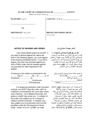 Fillable Online Arabic Notice of Hearing and Order Petition Temporary