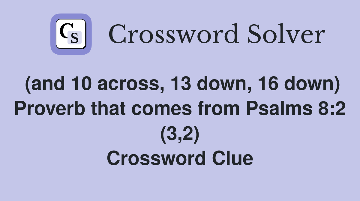 (and 10 across 13 down 16 down) Proverb that comes from Psalms 8:2 (3
