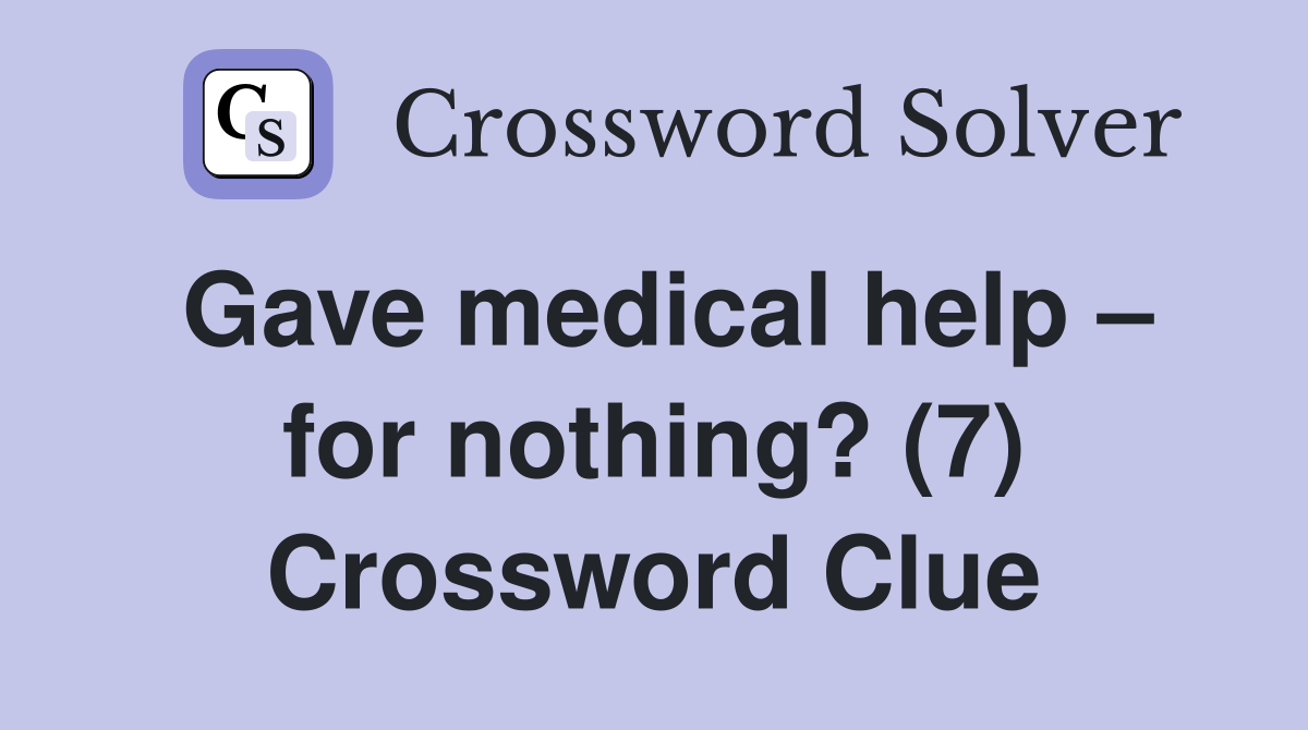 Gave medical help for nothing? (7) Crossword Clue Answers