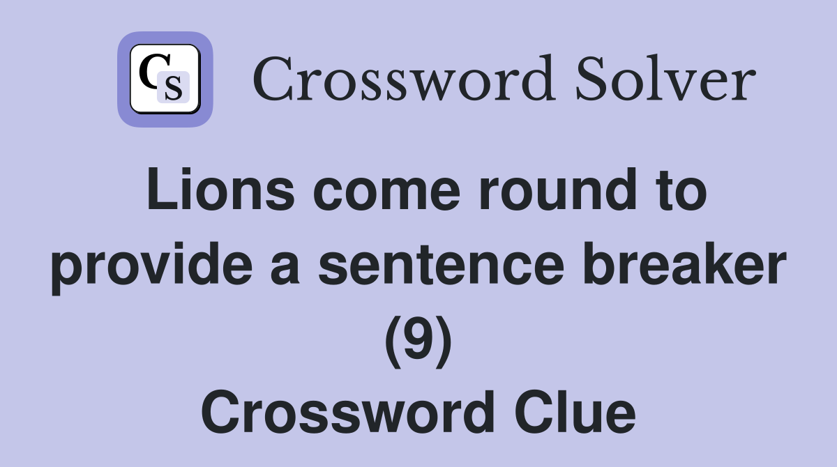 Lions come round to provide a sentence breaker (9) Crossword Clue