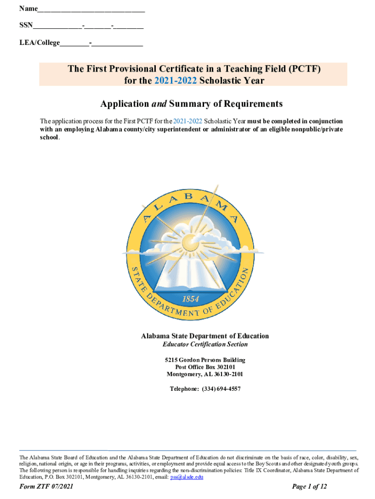 Fillable Online Provisional Certificate in a Teaching Field (PCTF) Fax