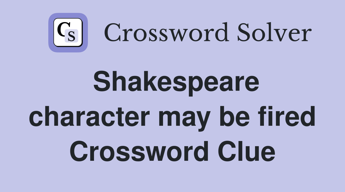 Shakespeare character may be fired Crossword Clue Answers Crossword