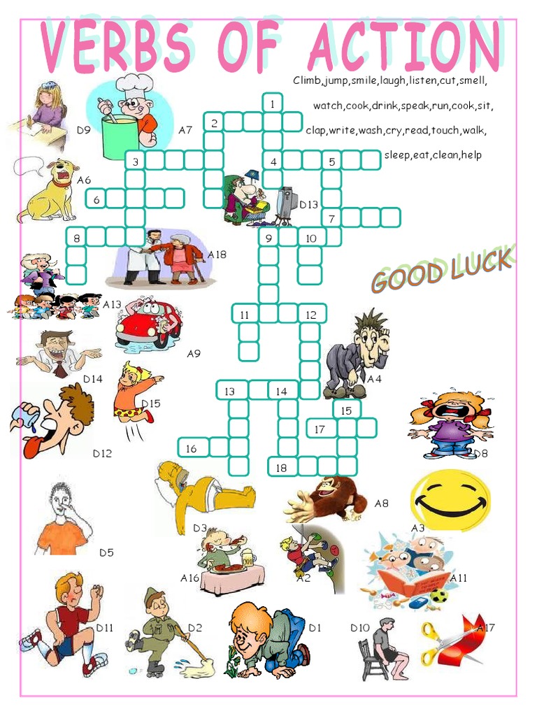 Action Verbs Crossword: English ESL worksheets pdf doc