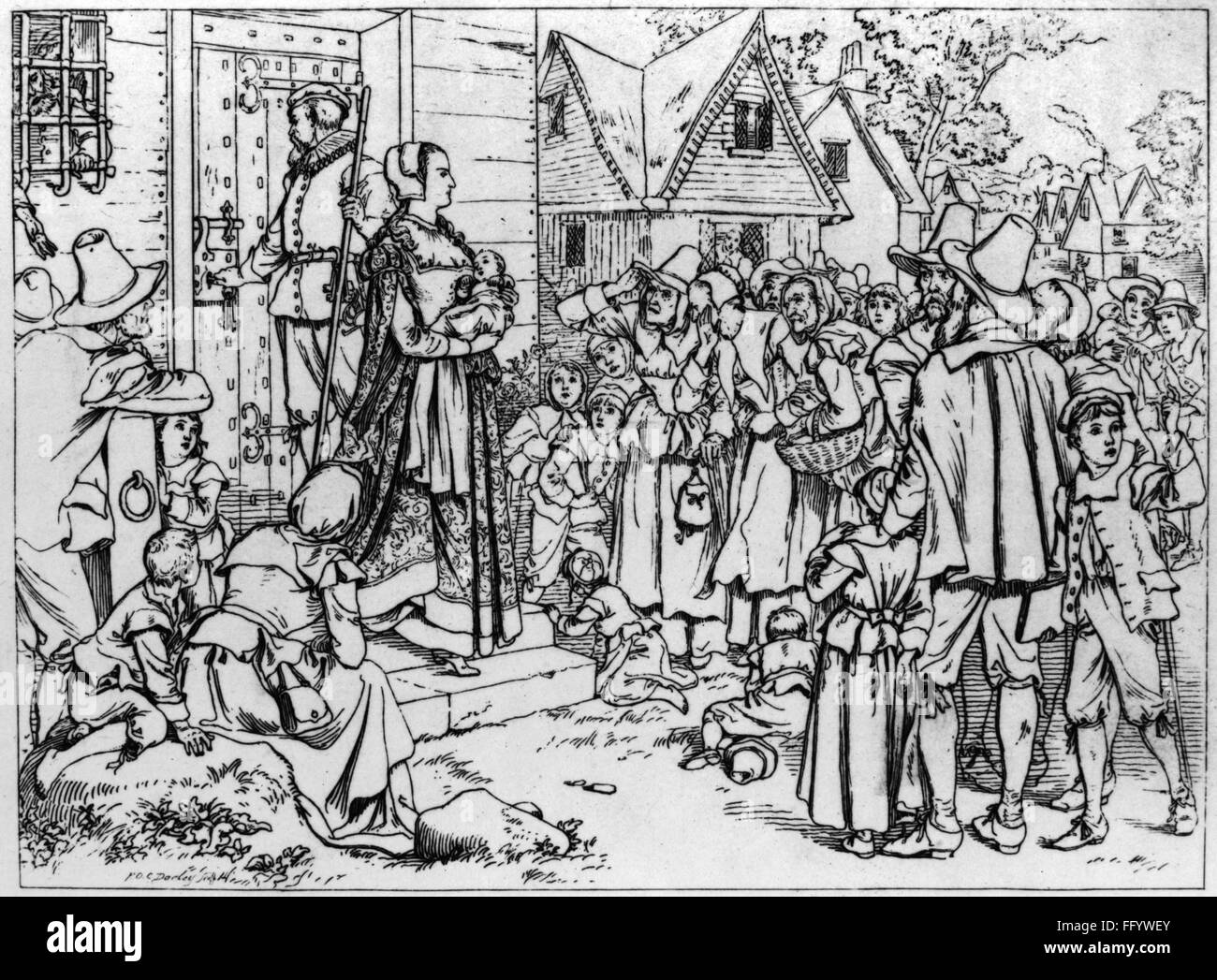 THE SCARLET LETTER /nHester Prynne and her daughter Pearl taunted by
