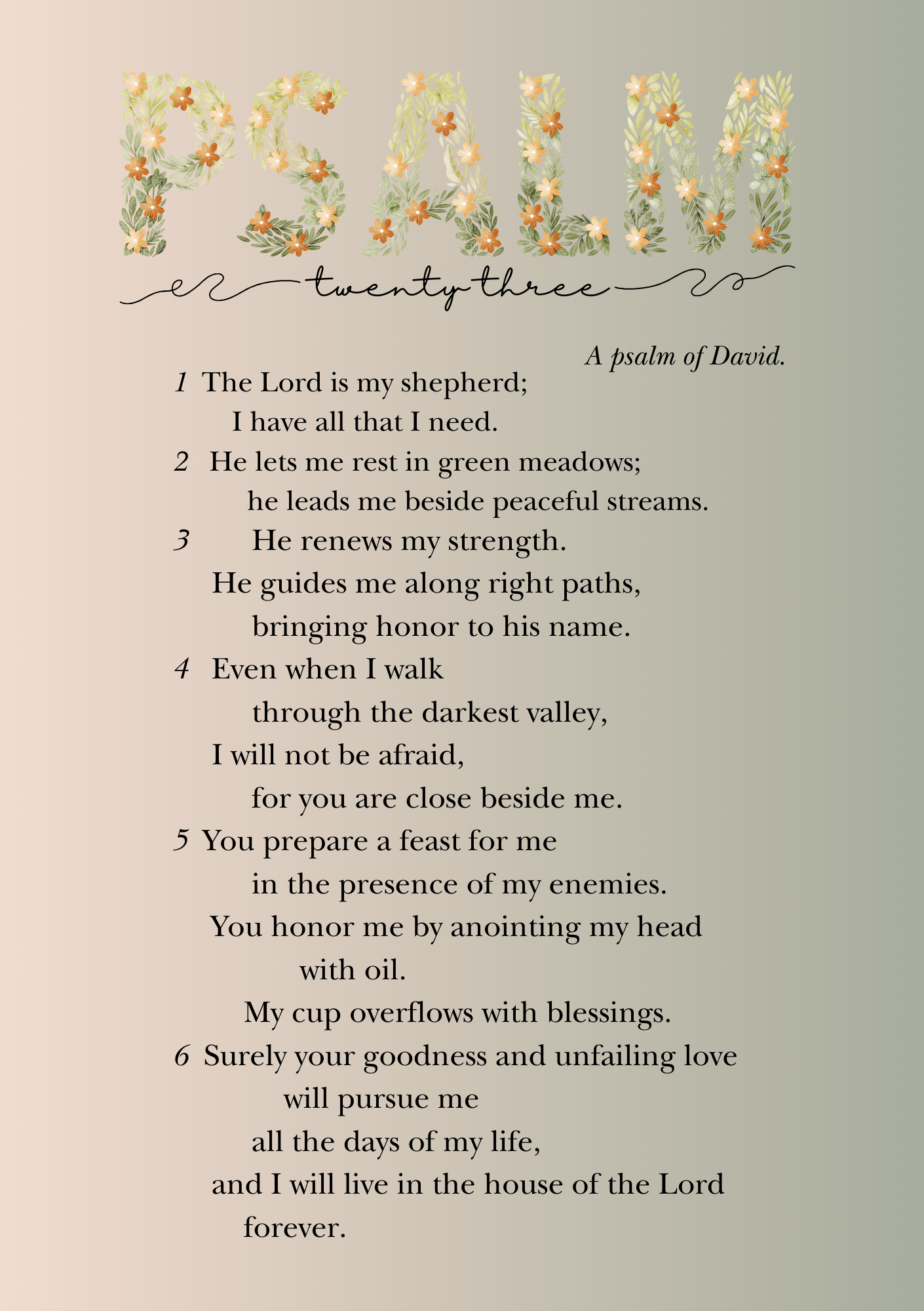 Free Psalm 23 Printable PDF (NIV)