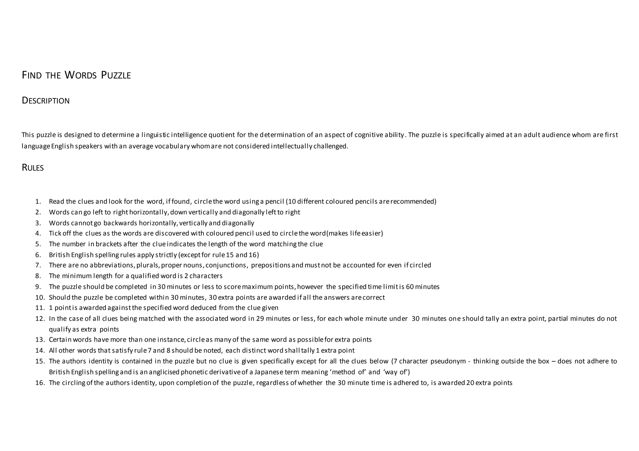 Word puzzle for verbal cognitive assessments DOCX