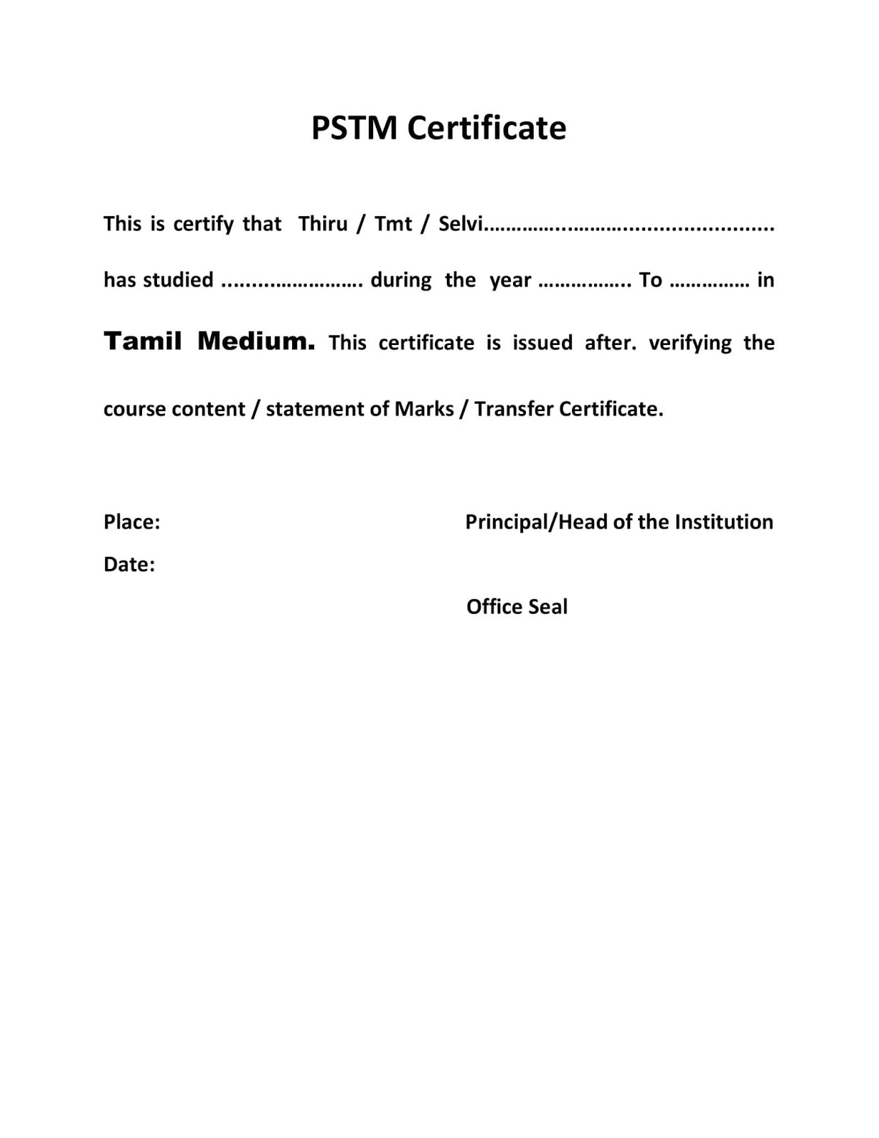 Here are some of the images for Pstm Certificate Meaning In Tamil that we found in our website database.