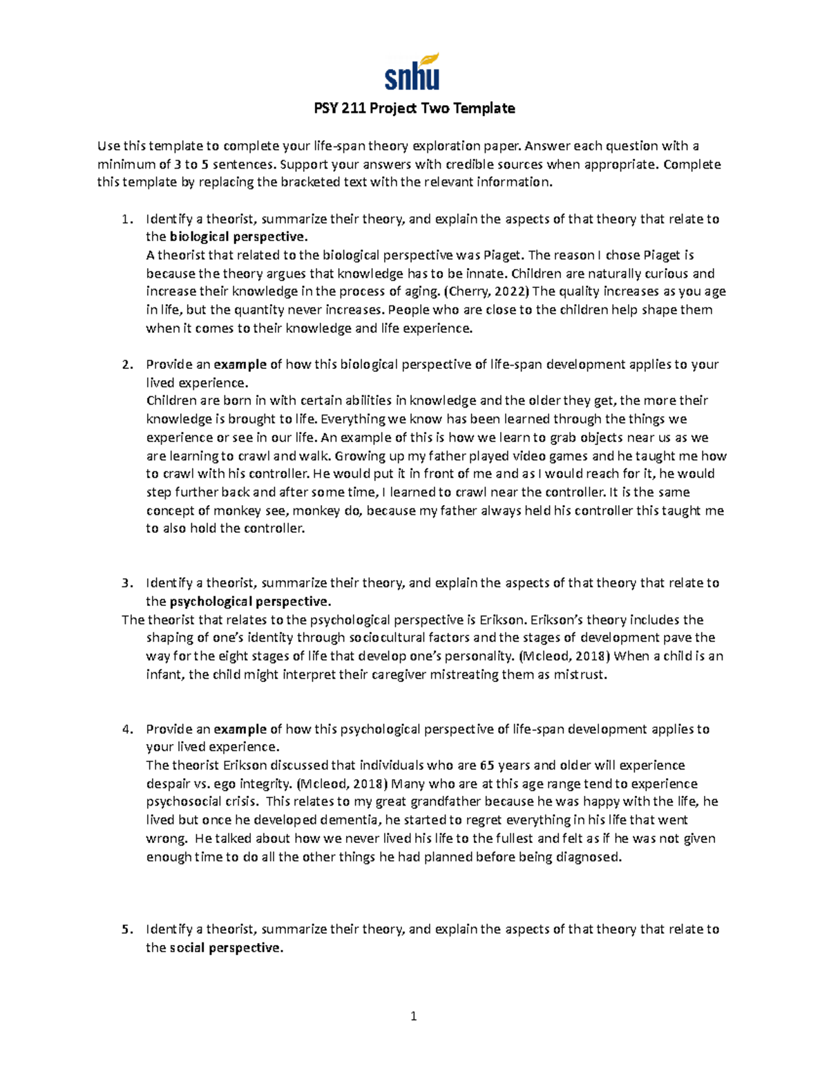 PSY 211 Project Two Template (Lifespan Theory Exploration Paper) PSY