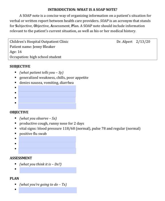 Solved INTRODUCTION: WHAT IS A SOAP NOTE? A SOAP note is a Chegg com