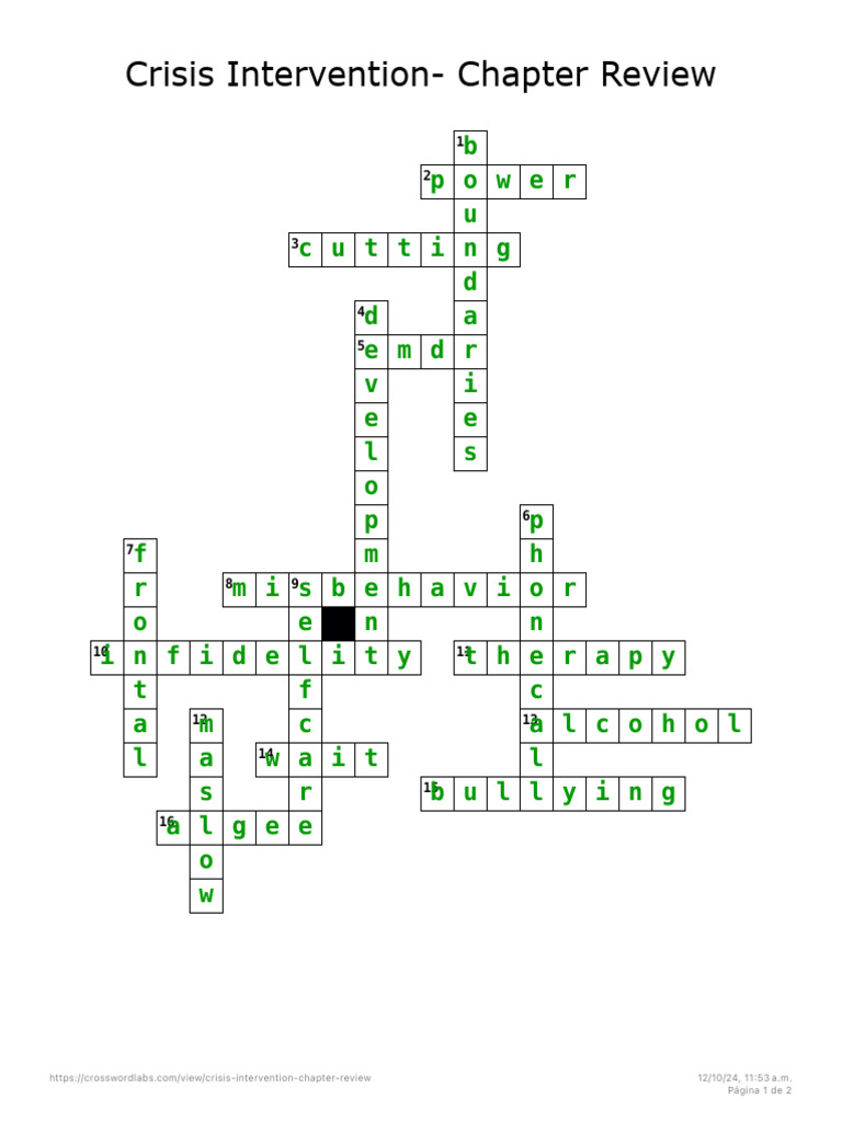 Crisis Intervention Chapter Review Crossword Labs PDF
