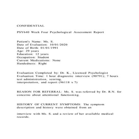 CONFIDENTIAL PSY640 Week Four Psychological Assessment Re PDF