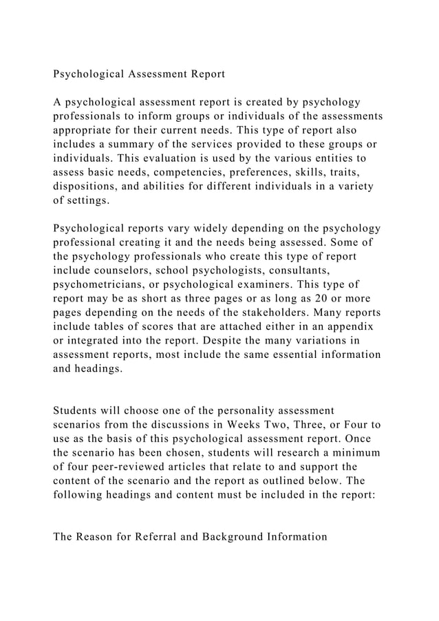 Psychological assessment report Psychology Psychological testing
