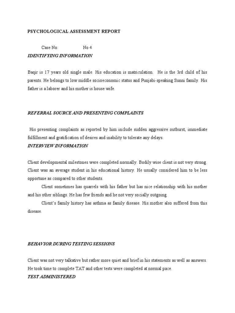 Psychological Assessment Example Report Templateral