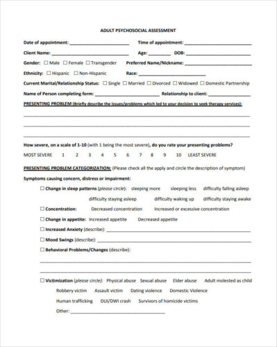 Psychological Assessment Form PDF Psychotherapy Psychological