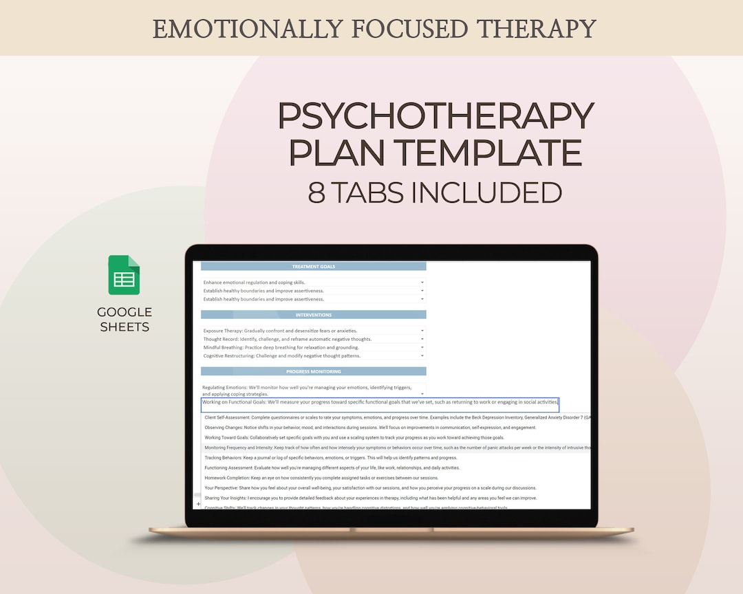 Treatment Plan Template Therapist Spreadsheet Goals Interventions