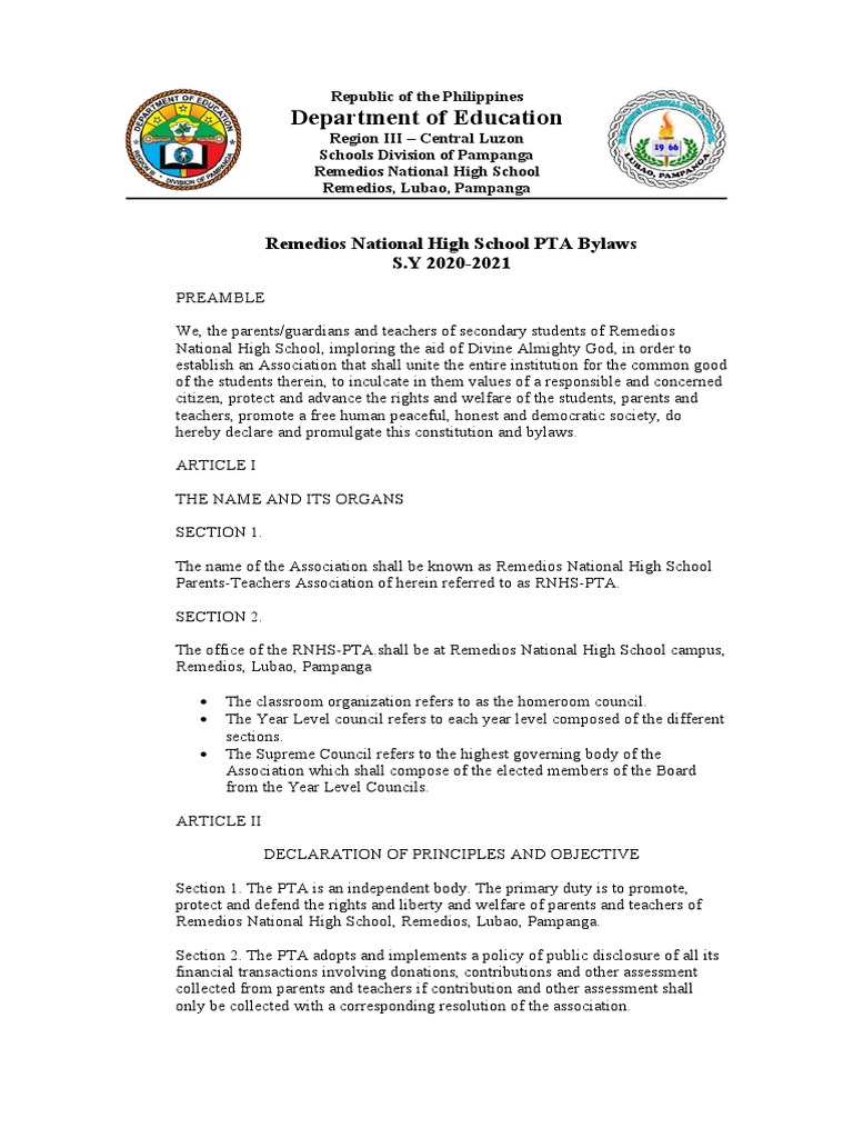 Pta bylaws Template Best Photos Of Pta bylaws Template Pta Membership