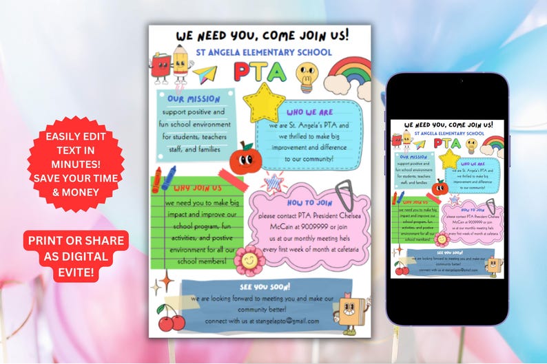 PTA Poster PTA Flyer Classroom Printable Handout Flyer Etsy