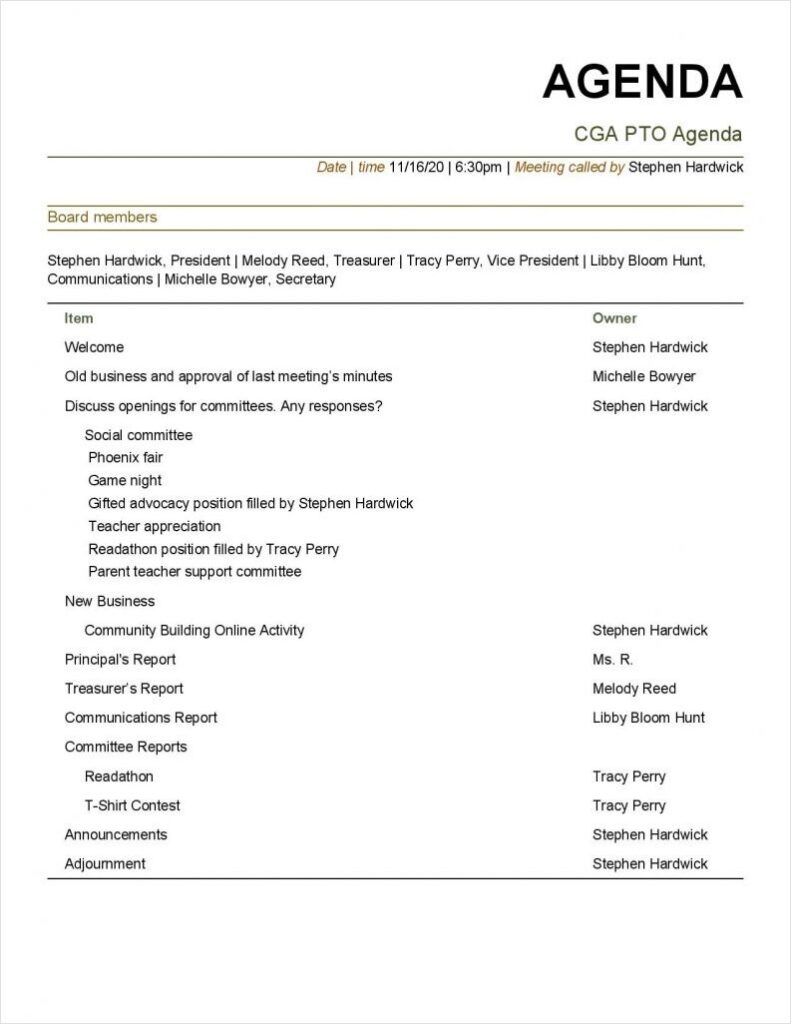 Pto Board Meeting Minutes Template