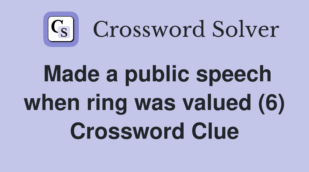 Made a public speech when ring was valued (6) Crossword Clue Answers
