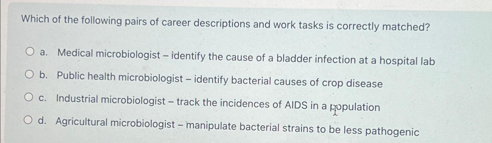 Solved Which of the following pairs of career descriptions Chegg com