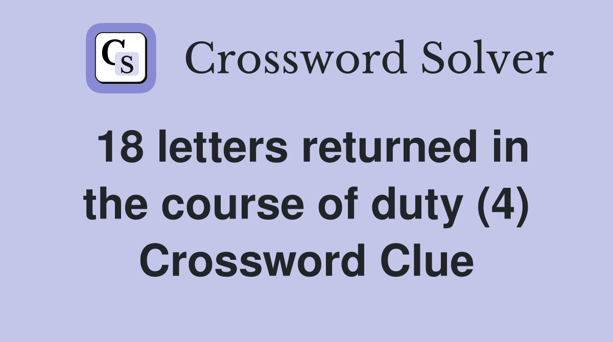 18 letters returned in the course of duty (4) Crossword Clue Answers
