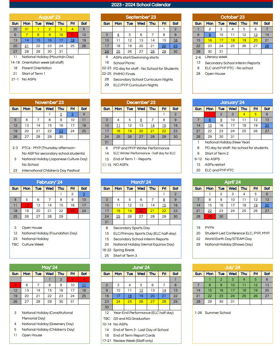 school calendar secondary 2023 2024 Vientiane Pattana School