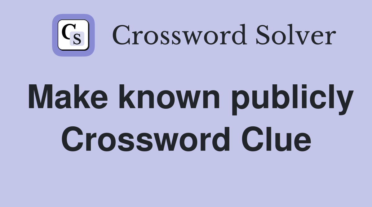 Here are some of the images for Publicly Known Crossword Clue that we found in our website database.