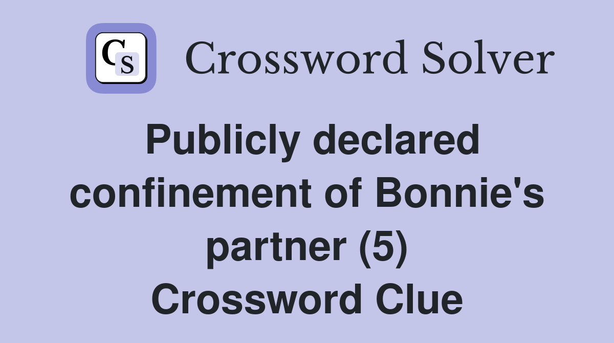 Publicly declared confinement of Bonnie s partner (5) Crossword Clue