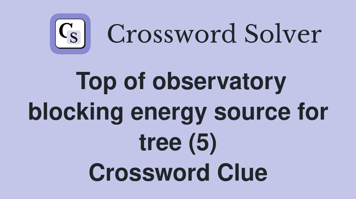 Top of observatory blocking energy source for tree (5) Crossword Clue