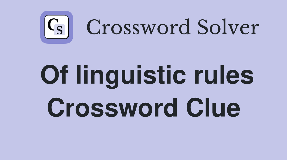 Of linguistic rules Crossword Clue Answers Crossword Solver