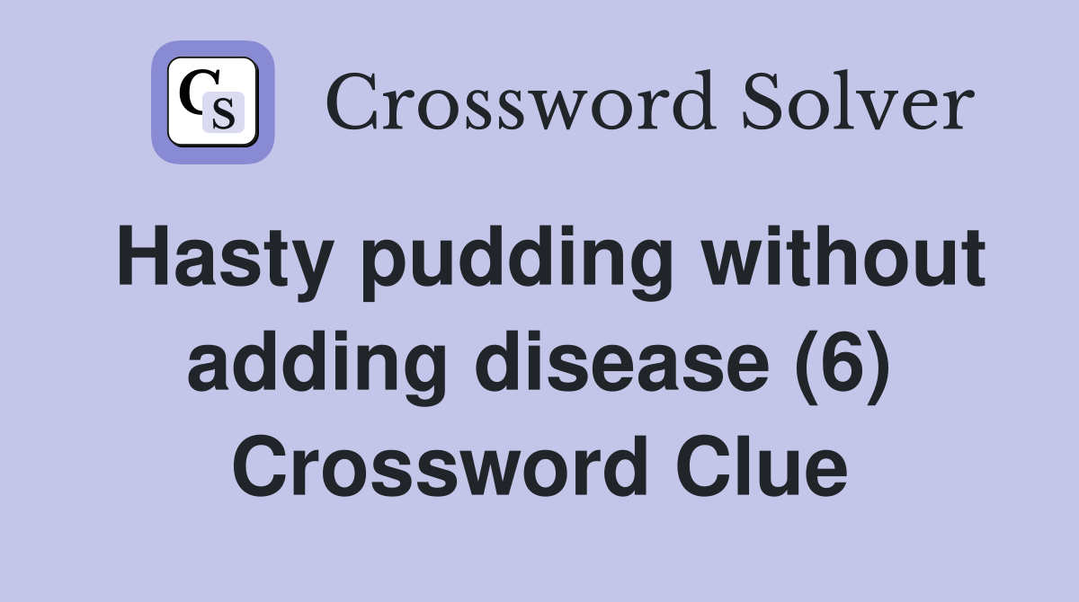 Hasty pudding without adding disease (6) Crossword Clue Answers