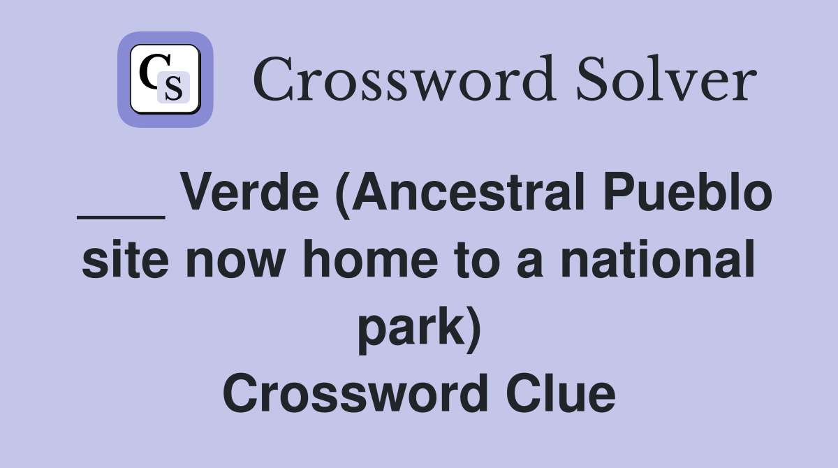 Verde (Ancestral Pueblo site now home to a national park) Crossword