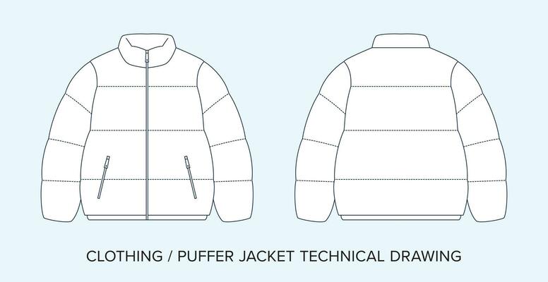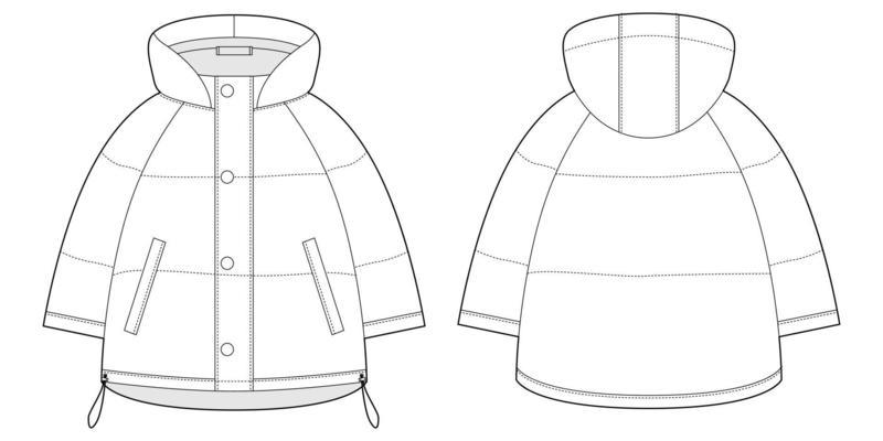 Puffer Jacket Flat Templates / Technical Drawings / Fashion CAD Designs