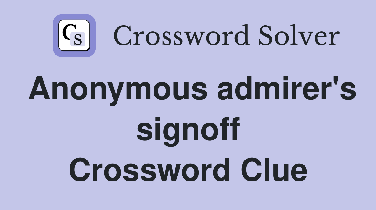Anonymous admirer #39 s signoff Crossword Clue Answers Crossword Solver